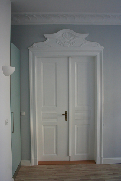 - denkmalgerechte Aufarbeitung, Lackierung der vorhandenen Türen
